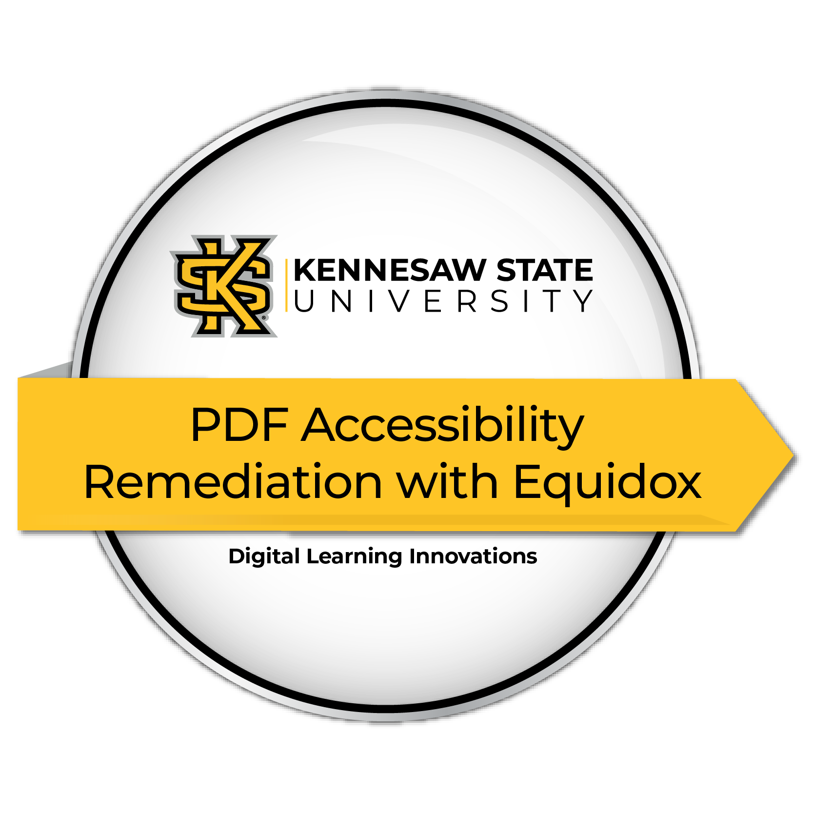 DLI - 006 PDF Accessibility Remediation with Equidox  The ‘PDF Accessibility Remediation with Equidox’ souvenir confirms participation in a webinar showcasing Equidox, a PDF accessibility tool at KSU that makes PDF accessibility fast and easy. Earning Criteria: To earn this micro-credential, learners must: